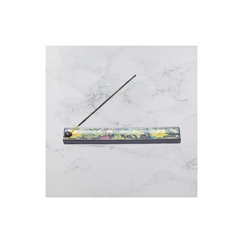 Porte-encens en céramique, décoré d'un motif fleuri d'étang de lotus.