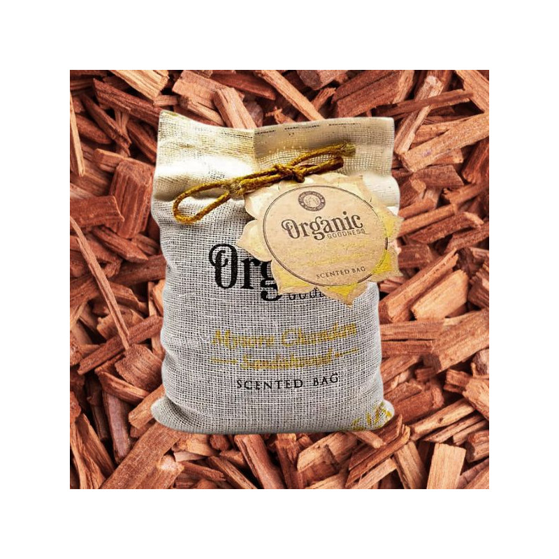 Sachet en coton rempli d'herbes, de poudre minérale et d'huiles essentielles, parfait pour rafraîchir un petit espace et éliminer les mauvaises odeurs.