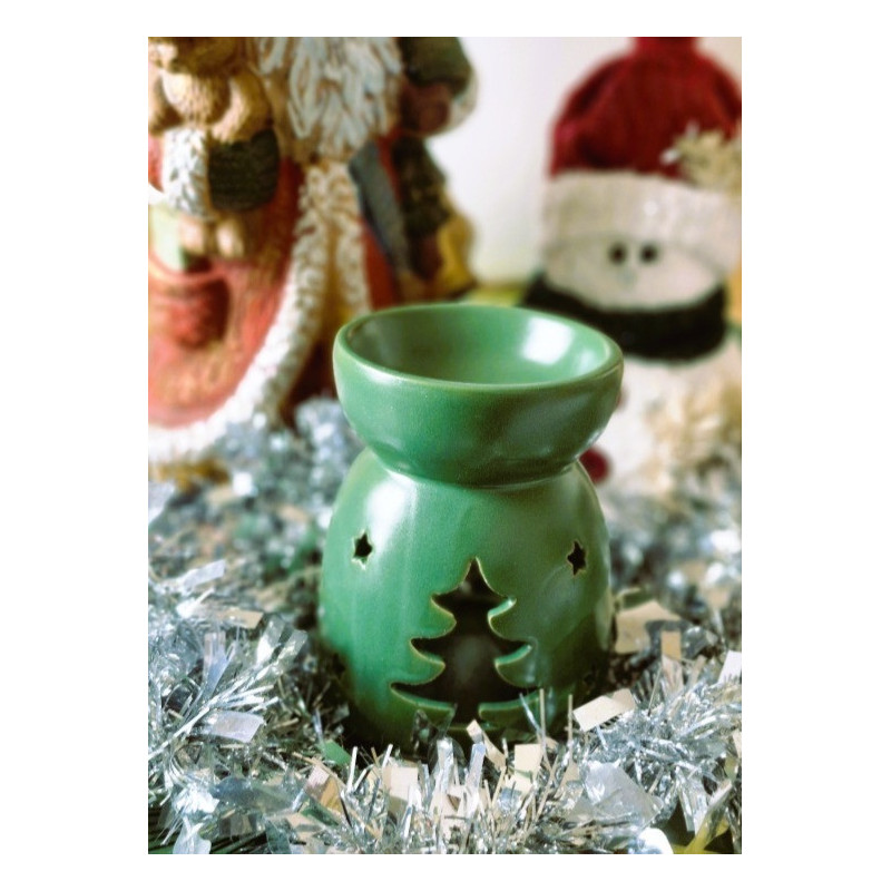 Brûleur (pour fondants de cire, huiles...) en céramique, motif "sapin de Noël", couleur verte