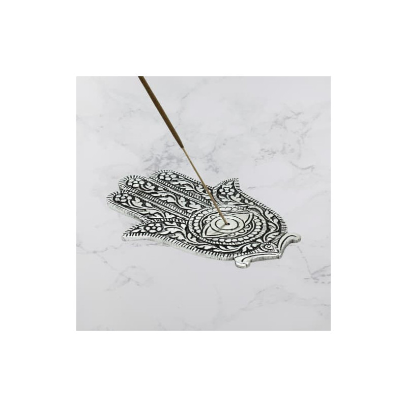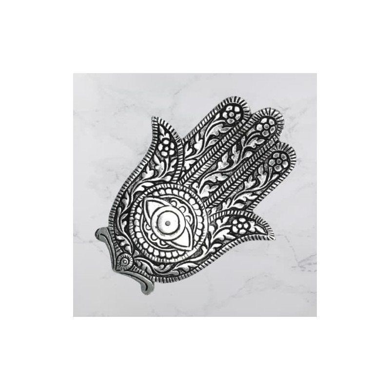 Symbole de protection et de bonne fortune ce porte-encens "Main de Fatma" est fabriqué en aluminium poli de haute qualité.